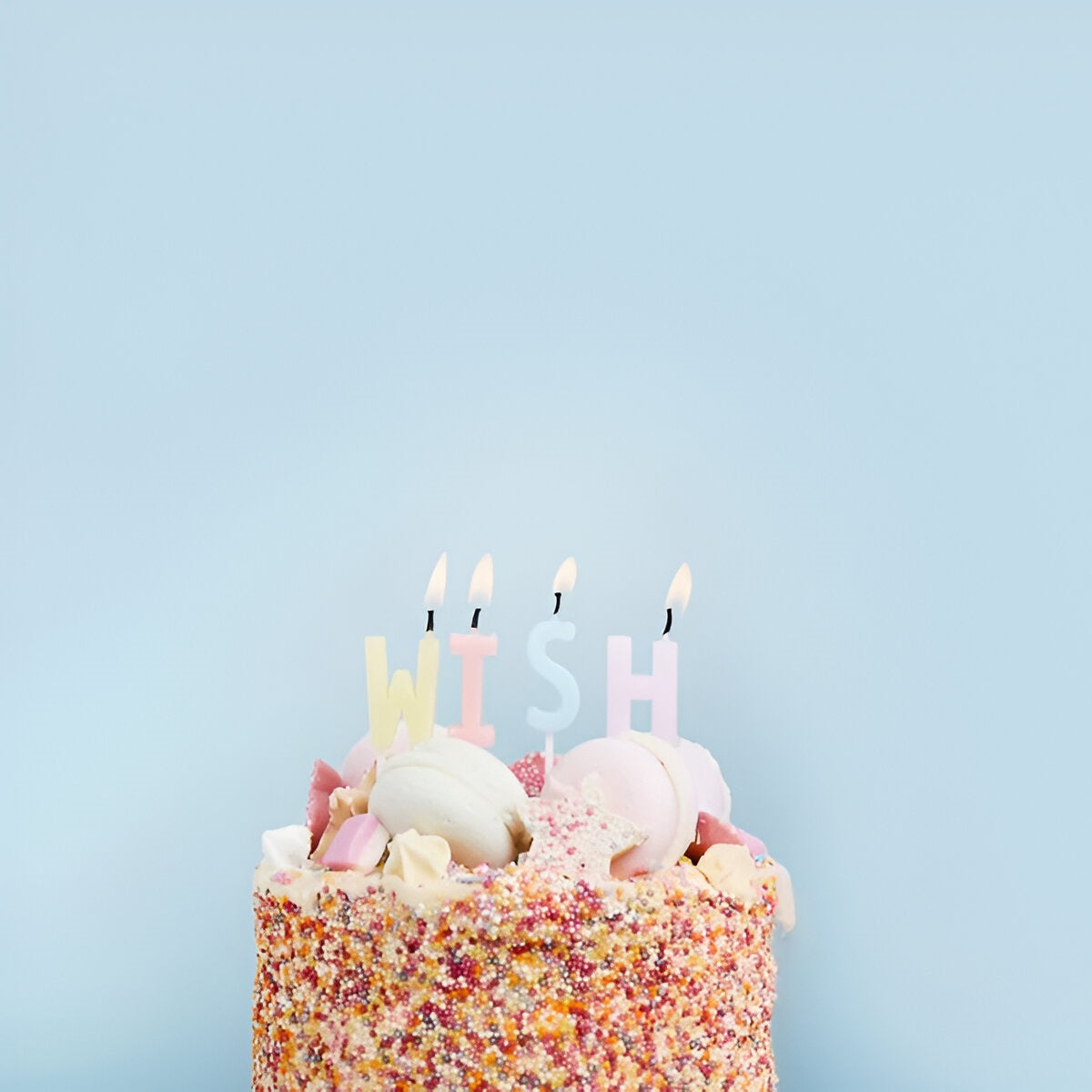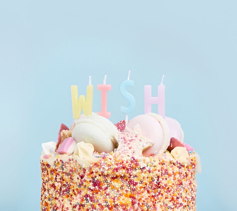 Κάνε μια ευχή και φύσα δυνατά! Χαριτωμένα κεράκια σε παστέλ χρώματα για να στολίσεις την τούρτα γενεθλίων με μήνυμα 'wish'!