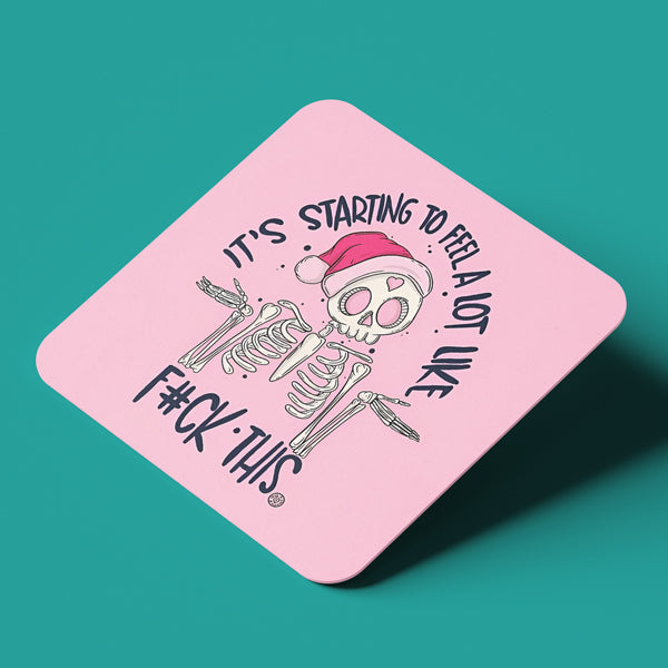 Ξύλινο σουβέρ Χιουμοριστικό Feel a lot like F#ck This, για να ακουμπάς την κούπα σου ή να χαρίσεις στον φίλο ή την φίλη που λατρεύει την περίοδο των Χριστουγέννων!