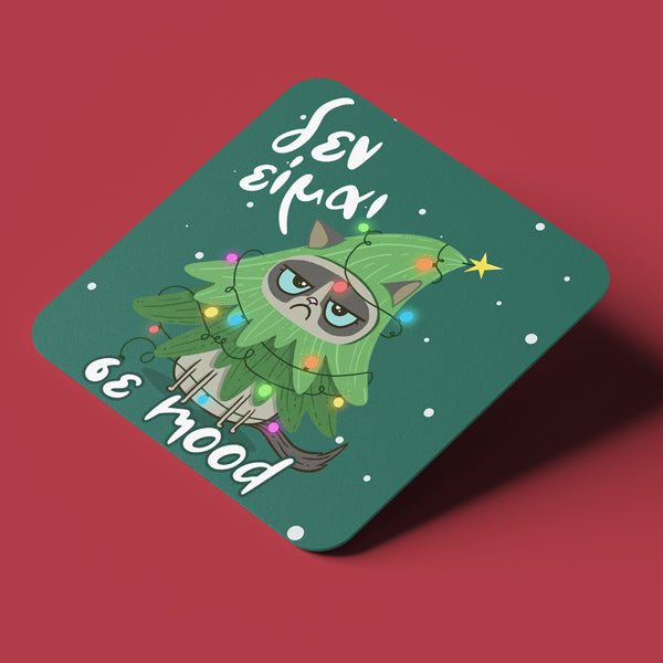 Ξύλινο σουβέρ Χιουμοριστικό Δεν είμαι σε Mood, για να ακουμπάς την κούπα σου ή να χαρίσεις στον φίλο ή την φίλη που λατρεύει την περίοδο των Χριστουγέννων!