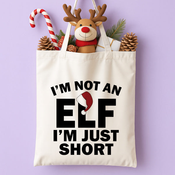 Τσάντα Χιουμοριστική I'm not an Elf I'm just Short, για να χαρίσεις ως δώρο για τα Χριστούγεννα και να εντυπωσιάσεις τα αγαπημένα σου πρόσωπα!.