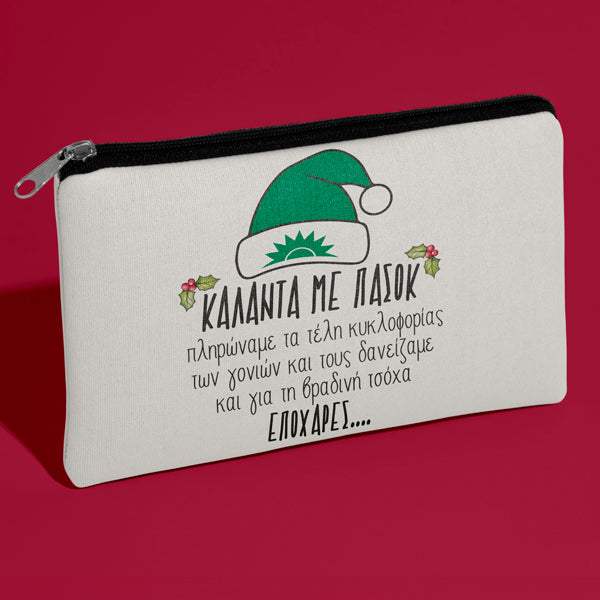 Προσωποποιημένο Χιουμοριστικό τσαντάκι – κασετίνα με σχέδιο "Κάλαντα με ΠΑΣΟΚ.. Εποχάρες.."