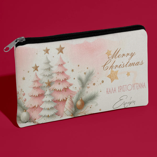 Προσωποποιημένο τσαντάκι – κασετίνα με σχέδιο "Ροζ Δεντράκια με Ευχές"