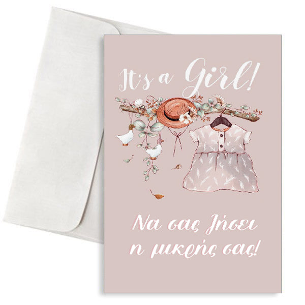 Ευχετήρια Κάρτα Βάπτισης Vintage - "It's a Girl!" Ιδανικό δωράκι για να ευχηθείς στους γονείς και στο μωράκι τους και να τους συγκινήσεις με τα όμορφά σου λόγια για την ξεχωριστή αυτή μέρα της βάπτισης του μωρού τους!