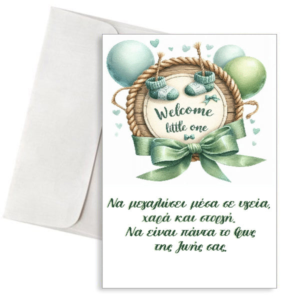 Ευχετήρια Κάρτα Βάπτισης Vintage - "Πράσινο Φιογκάκι με Ευχές!" Ιδανικό δωράκι για να ευχηθείς στους γονείς και στο μωράκι τους και να τους συγκινήσεις με τα όμορφά σου λόγια για την ξεχωριστή αυτή μέρα της βάπτισης του μωρού τους!