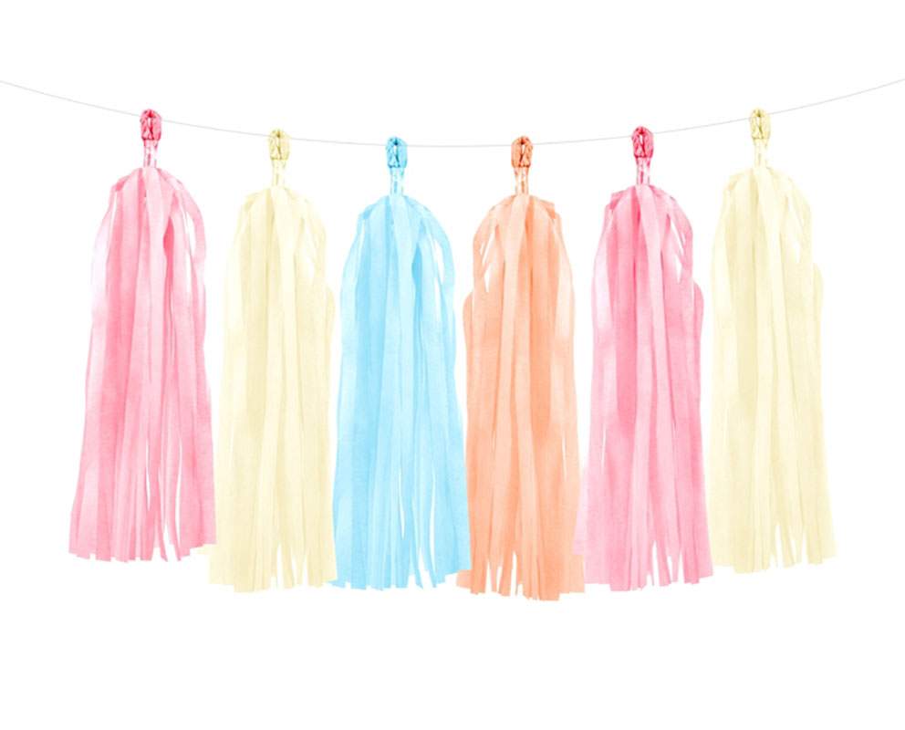 Μιξ χρωμάτων γιρλάντα με φούντες. Είναι στη μόδα & πολύ εντυπωσιακή! Ιδανική για γενέθλια, γάμους, βάπτιση και πάρτι!