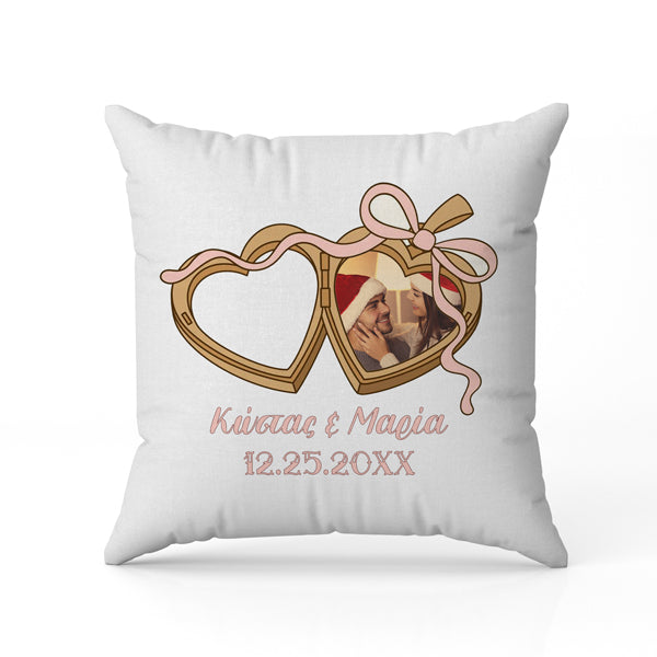 Μαξιλάρι Χριστουγεννιάτικο – Ζευγάρι σε Διπλή Καρδιά. Ιδανικό για δώρο!